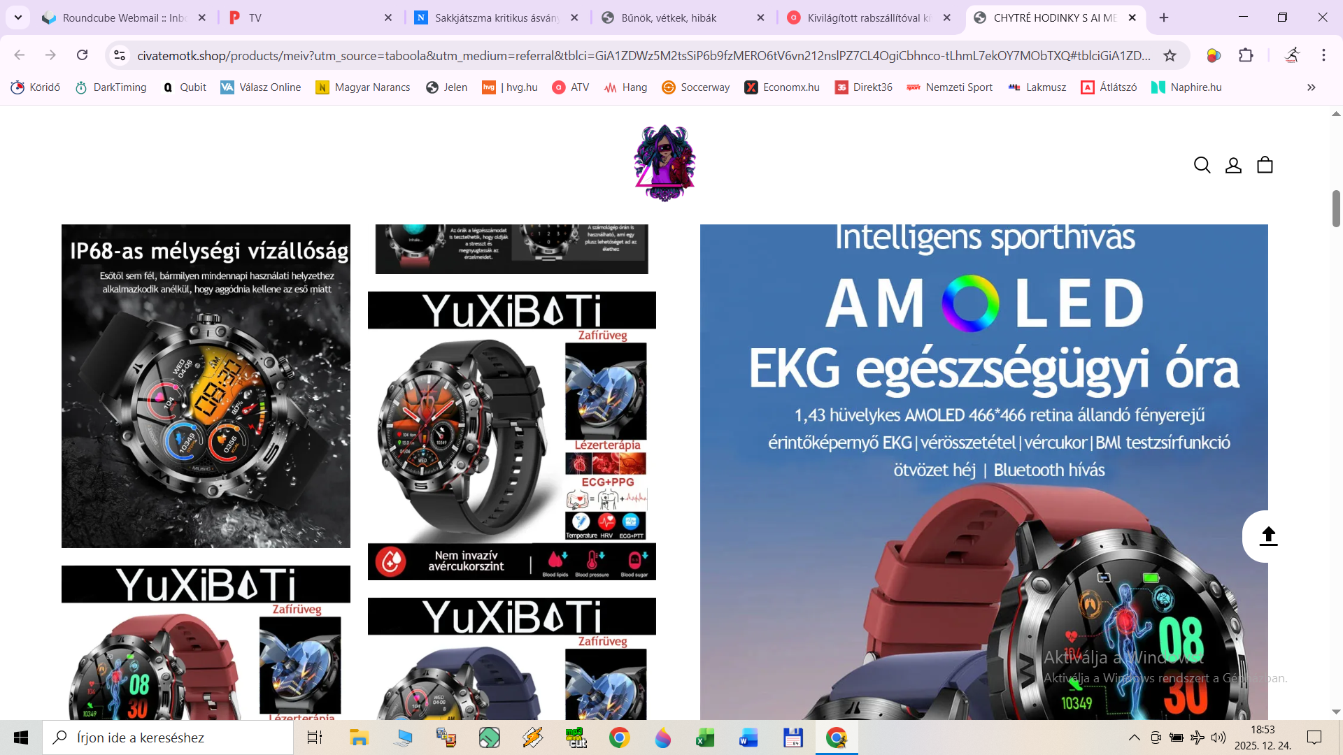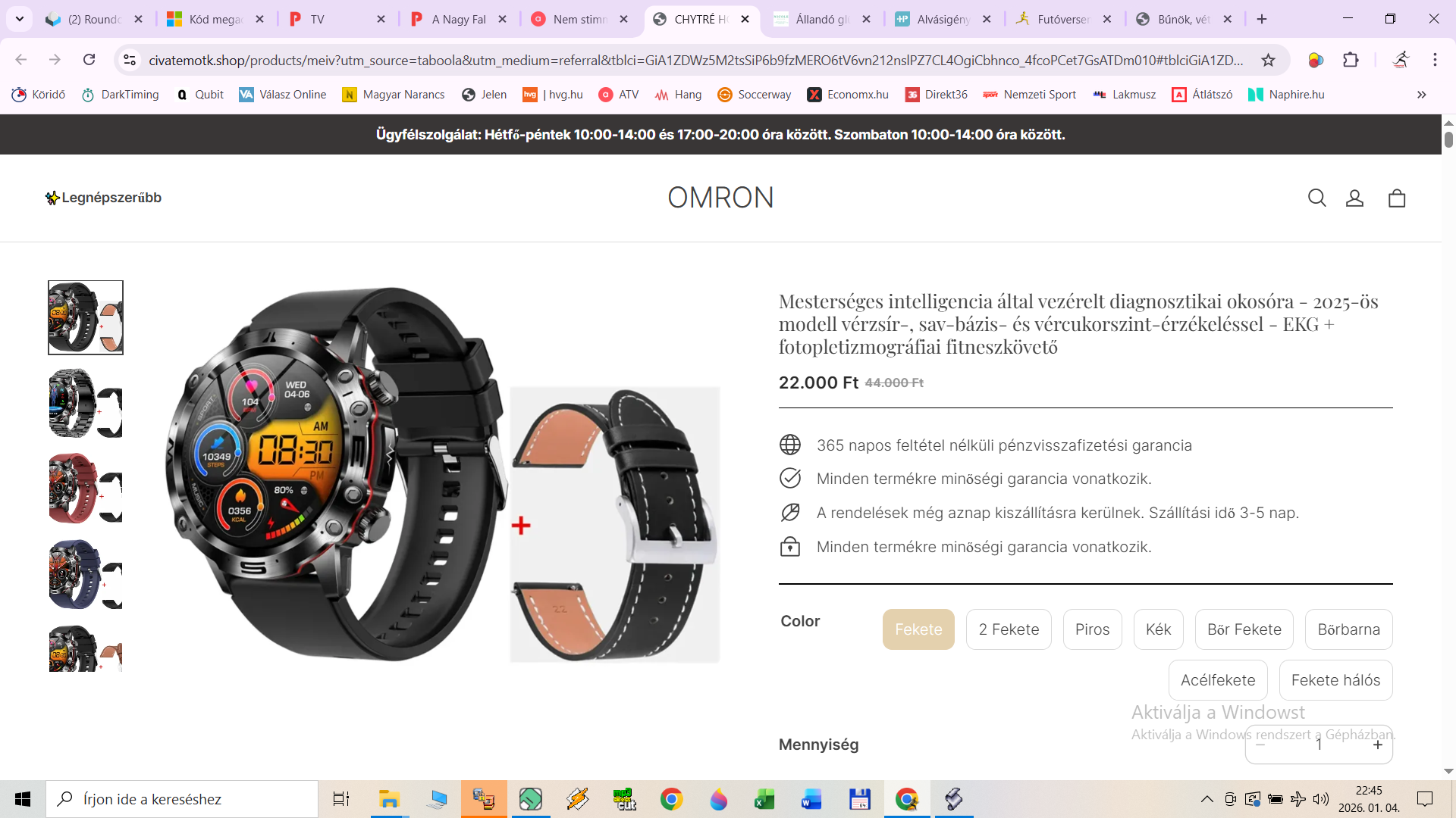 https://civatemotk.shop/products/ az óra képét pedig a YuXiBaTi márkáju órahírdetésből vágták ki, ami a TEMU honlapján elérhető. Ott még jobb oldalt látható is egy ténylegesen vércukrot is mérő okosóra: