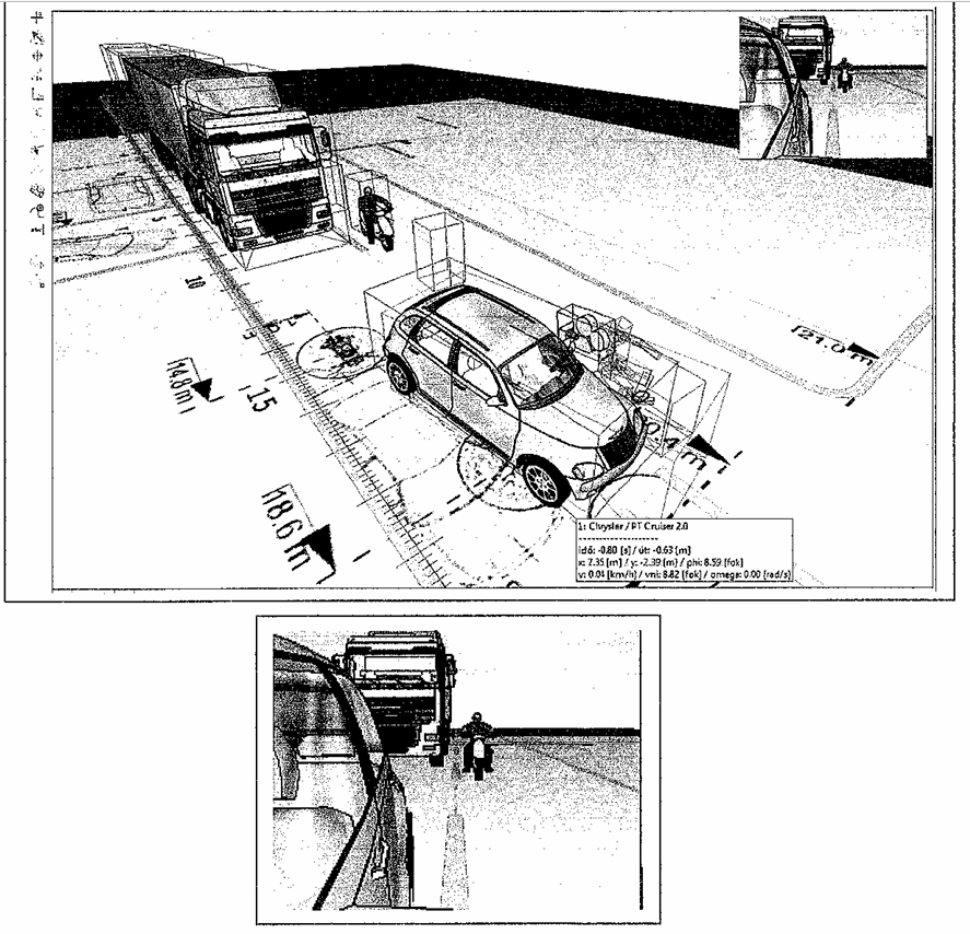 Azonkívül, hogy ő is felsorolja, hogy semmilyen adatot sem ismer, még leír 25 tételt, ami szükséges lenne a helyzet meghatározásához. A baj csak az, hogy ebből egyetlen egy sem volt adott, lévén, hogy nem volt akkor helyszínelés mivel robogósunk a helyszínről hazament a túloldalon 30 méterrel lejjebb levő házába. Azonban ez egy kiváló szakember számára nem jelent problémát - otthonról, két év múlva meghatározta a szükséges induló adatokat: vagyis, hogy az én kocsim 14 fokos szögben állt és 5 km/óra sebességgel haladt, a motoros sebessége pedig 38 km/óra volt. és 8 méterre volt tőlem,: